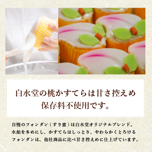 桃かすてらの魅力をそのままに、気軽に楽しめるミニサイズに仕上げた一品。